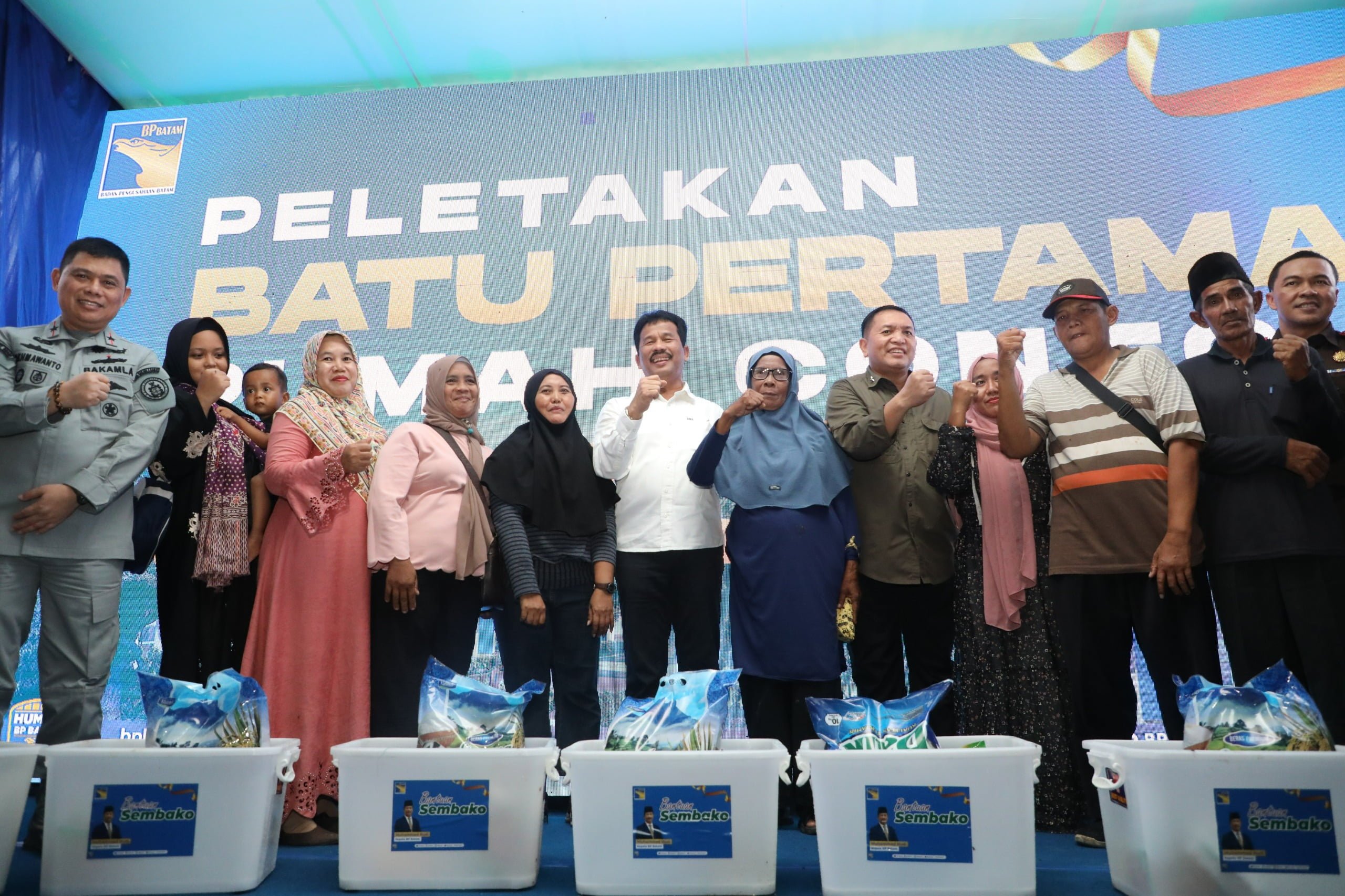Kepala BP Batam, Muhammad Rudi melakukan peletakan batu pertama (Groundbreaking) rumah contoh bagi warga yang berlokasi di Tanjung Banon.