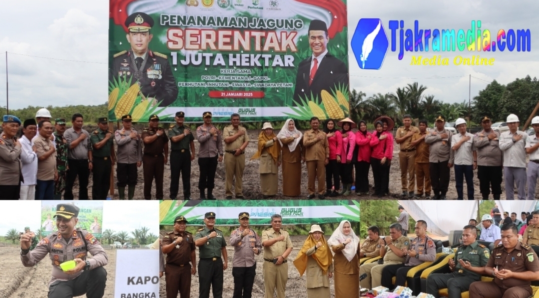 Tjakramedia.com, Bangka Tengah – Polres Bangka Tengah menggelar kegiatan Penanaman Jagung Serentak 1 Juta Hektar di lokasi utama PT Putra Bangka Tani, Desa Belilik, Kecamatan Namang, Kabupaten Bangka Tengah. Selasa (21/01/25).