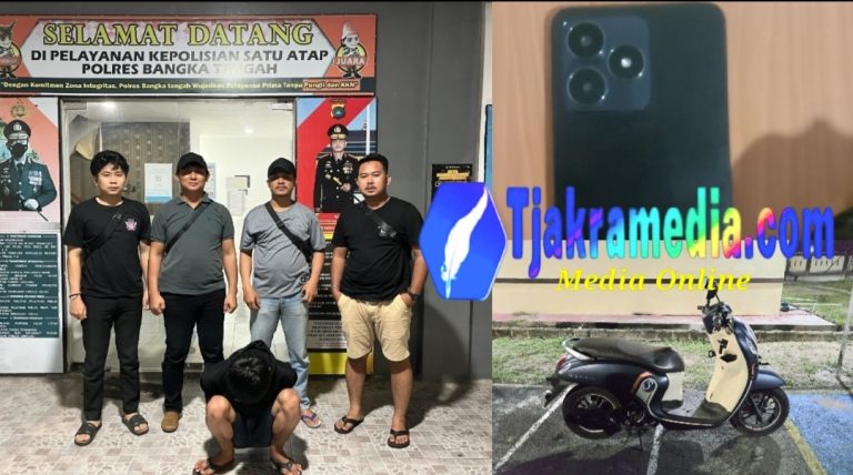 Tjakramedia.com, Bangka Tengah – Tim Opsnal Sat Reskrim Polres Bangka Tengah berhasil mengamankan seorang pria berinisial T.F. (21), warga Palembang, yang diduga terlibat dalam kasus pencurian dengan pemberatan (curanmor) dan penggelapan di wilayah Koba.